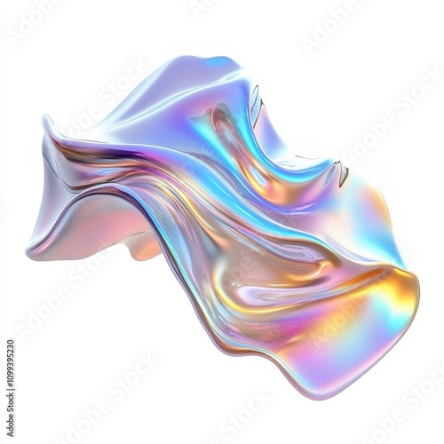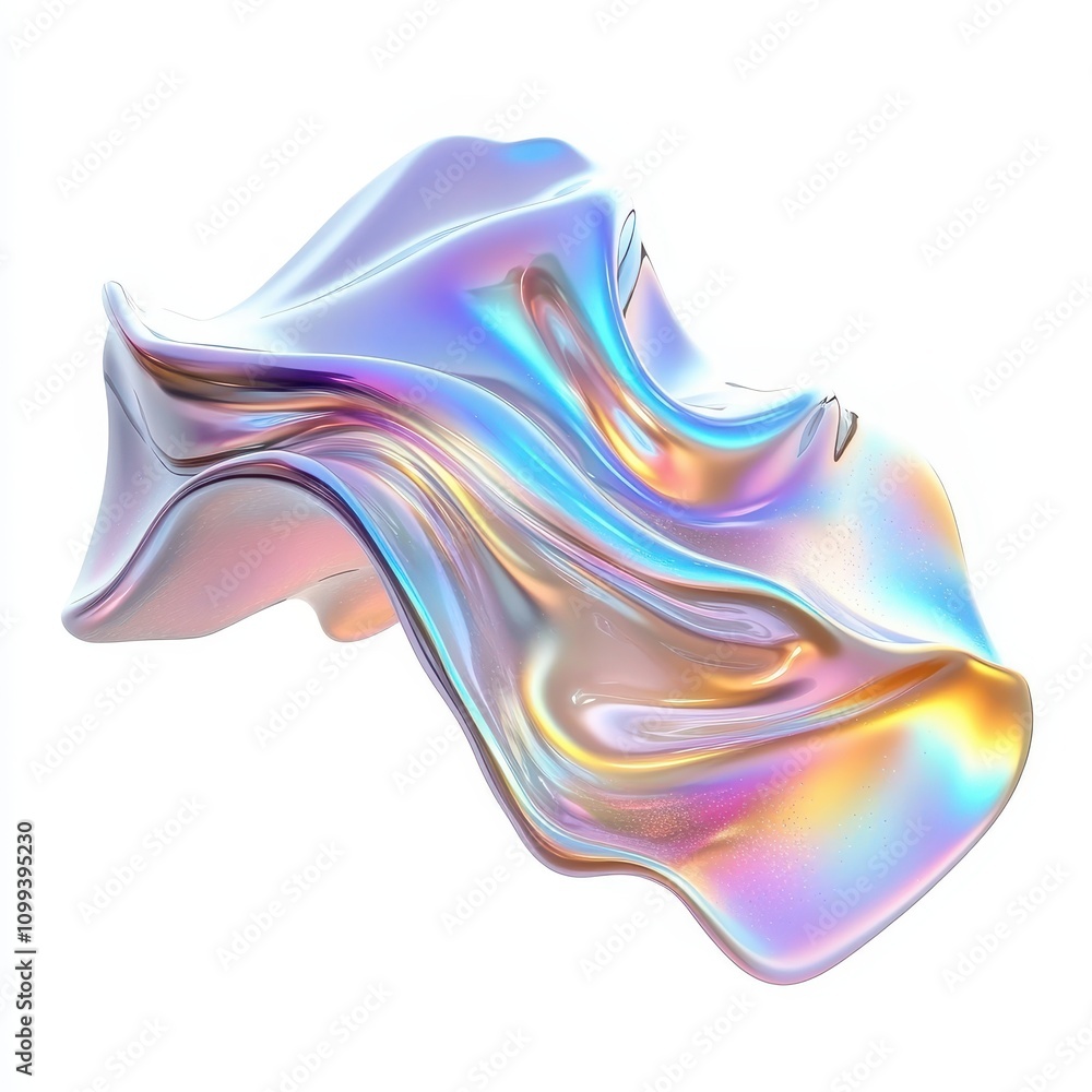 The watermark will not be included on Wall mural.: A colorful, fluid, abstract shape with iridescent highlights and smooth curves -