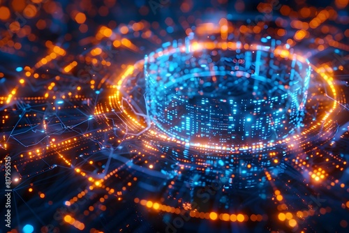 Wall mural a colorful, glowing circle with a blue center and orange edges. the circle is surrounded by a networ