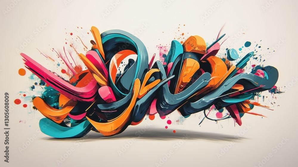 The watermark will not be included on Wall mural.: A colorful abstract artwork depicting dynamic shapes and splashes