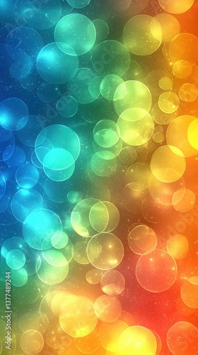 The watermark will not be included on Wall mural.: A colorful abstract background featuring vibrant bubbles in various sizes against a gradient of blue