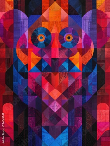 Wall mural : A colorful abstract painting of a monkey with eyes and a nose - generative ai -