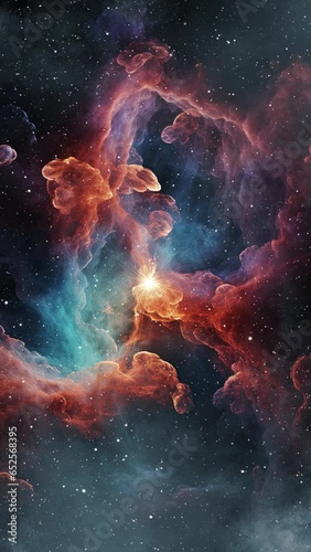 The watermark will not be included on Wall mural.: A colorful animation of a cosmic nebula rotating with stars in the distance -