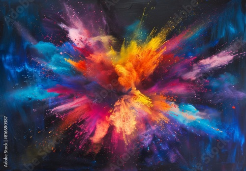 Wall mural a colorful explosion of paint is splattered across a dark background. the colors are bright and vibr - Wall murals Wall mural a colorful explosion of paint is splattered across a dark background. the colors are bright and vibr - Wall murals