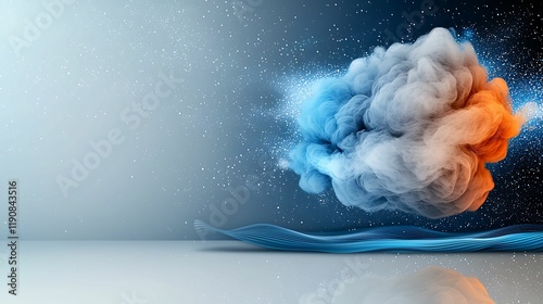 The watermark will not be included on Wall mural.: A colorful explosion of smoke and particles against a gradient background, creating a dynamic and en
