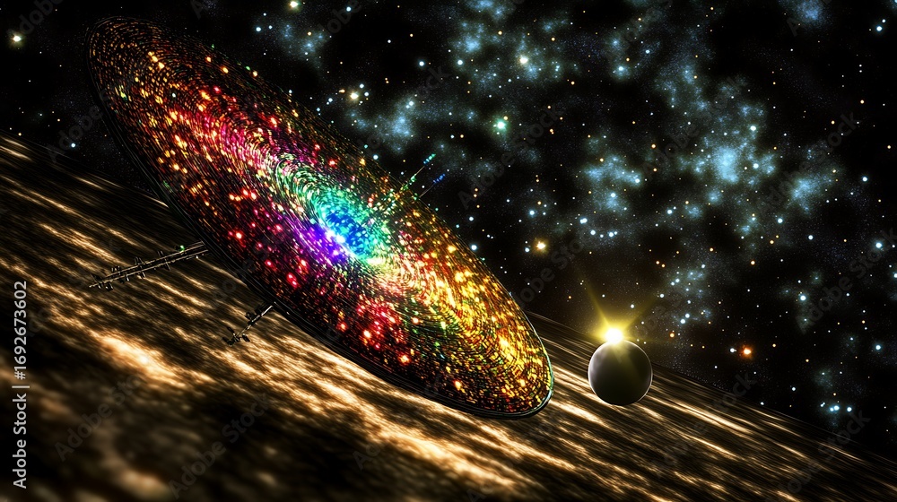 The watermark will not be included on Wall mural.: A colorful galaxy with a planet and a starfield in outer space