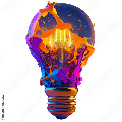 The watermark will not be included on Wall mural.: A colorful glowing idea bulb lamp, isolated design element on transparent background, visualization