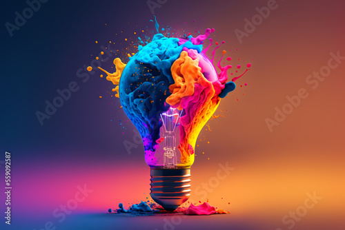 Wall mural a colorful glowing idea bulb lamp, visualization of brainstorming, bright idea and creative thinking