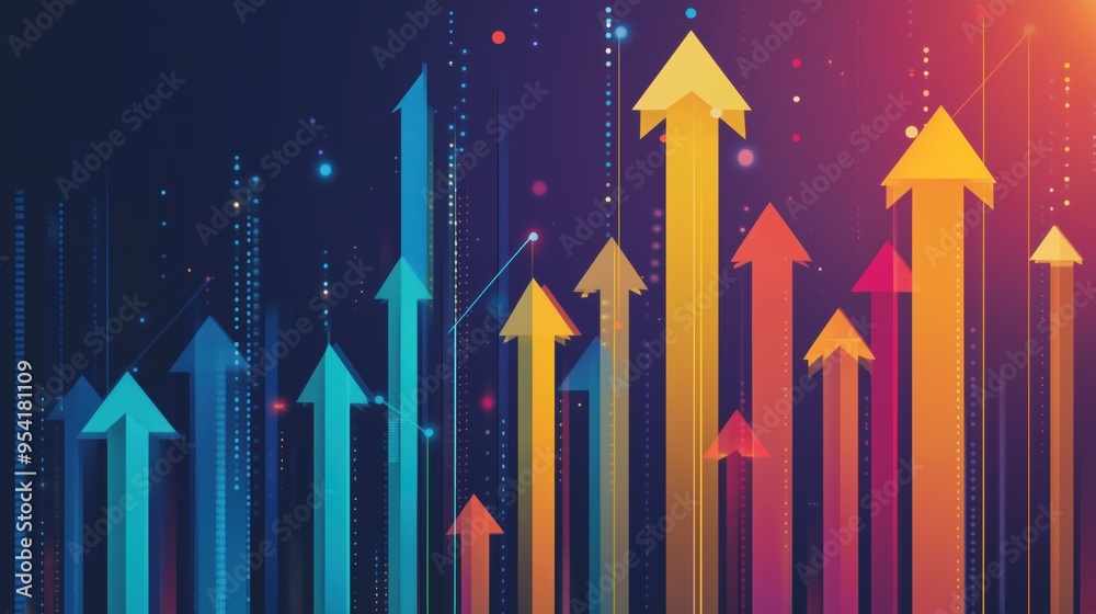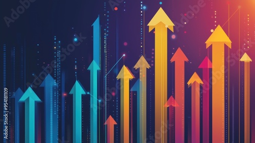 Wall mural a colorful image of many arrows pointing upwards. the arrows are in different colors and sizes, and