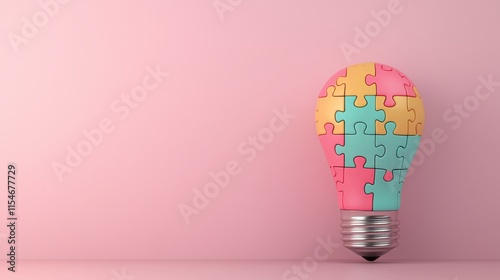 Wall mural a colorful light bulb designed with puzzle pieces, symbolizing creativity and problem-solving agains