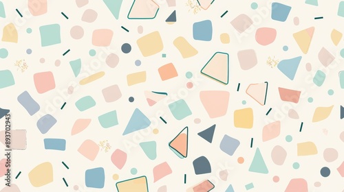 Wall mural : A colorful pattern of shapes and squares on a white background