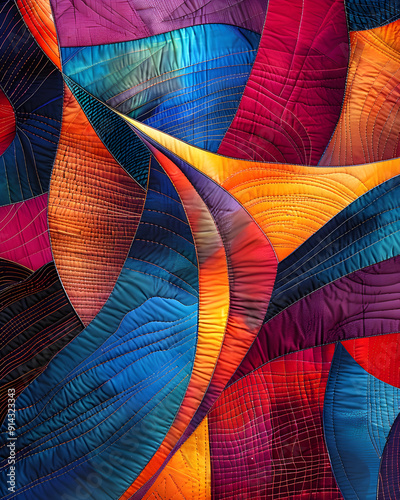 The watermark will not be included on Wall mural.: A colorful quilt with a pattern of different colors and shapes