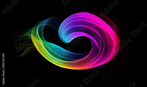 The watermark will not be included on Wall mural.: A colorful rainbow-like light, with flowing lines and curves on a dark background, creating an abstr