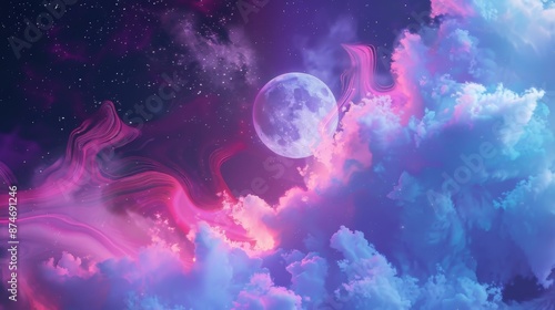 The watermark will not be included on Wall mural.: A colorful sky with clouds and the moon in it - ai -