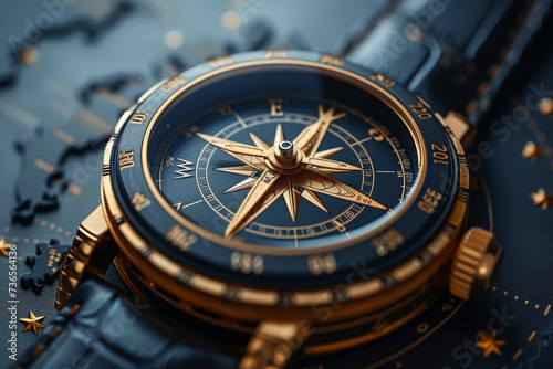 Wall mural a compass pointing in multiple directions, illustrating the exploration and navigation of innovative