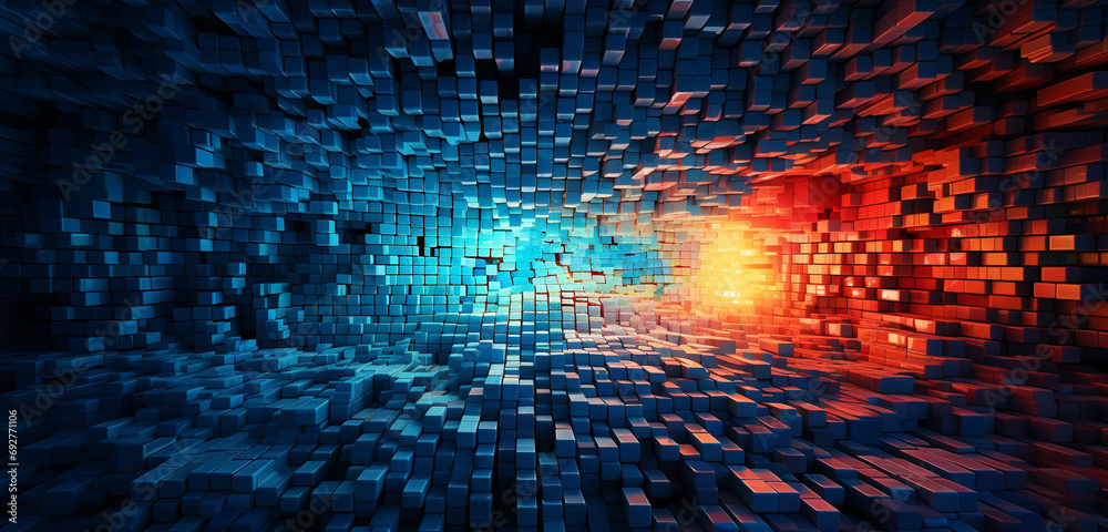 Wall mural : A complex 3d abstract mosaic with intricate color interplays and dynamic contrasts against a celesti