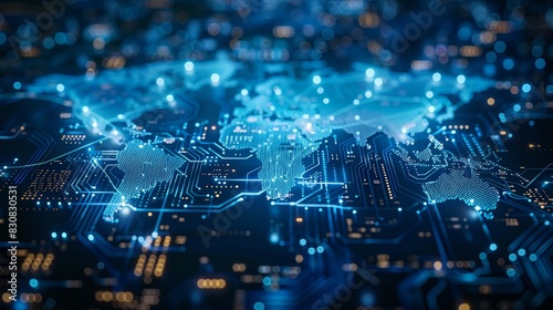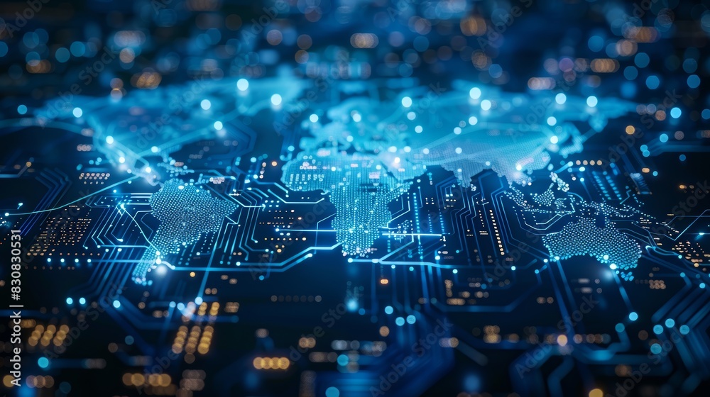 The watermark will not be included on Wall mural.: A complex tech illustration of a computer circuit board with a network of electrical pathways