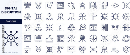 The watermark will not be included on Wall mural.: A comprehensive set of line icons representing digital disruption and technological advancement -
