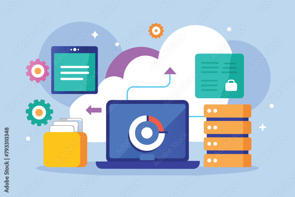 Wall mural a computer and folders placed on top of a cloud, representing cloud computing and data storage, the  - Wall murals Wall mural a computer and folders placed on top of a cloud, representing cloud computing and data storage, the - Wall murals