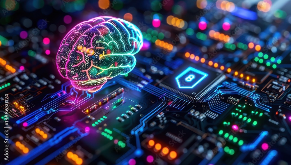 The watermark will not be included on Wall mural.: A computer chip with a brain on it