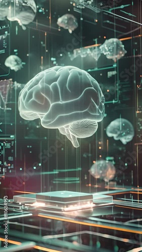Wall mural a computer chip with a brain on it. the brain is surrounded by other brains. vertical video