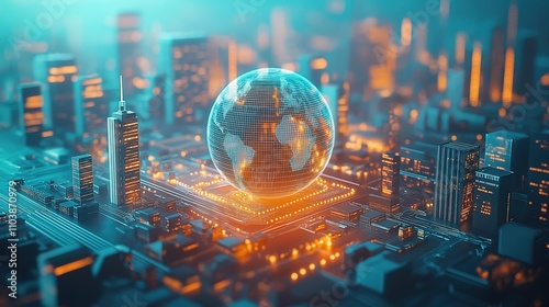 The watermark will not be included on Wall mural.: A computer chip with a globe on top of it