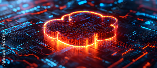 Wall mural a computer chip with a red glowing cloud on it - Wall murals Wall mural a computer chip with a red glowing cloud on it - Wall murals