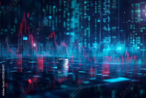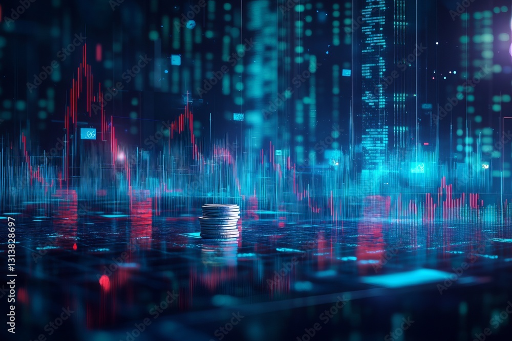 The watermark will not be included on Wall mural.: A computer generated image of a city with a coin on the ground - the coin is surrounded by a series o
