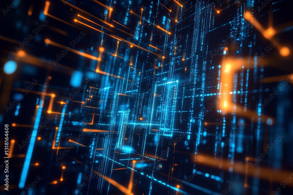 Wall mural a computer generated image of a cityscape with blue and orange lights. the image is full of squares  - Wall murals Wall mural a computer generated image of a cityscape with blue and orange lights. the image is full of squares - Wall murals