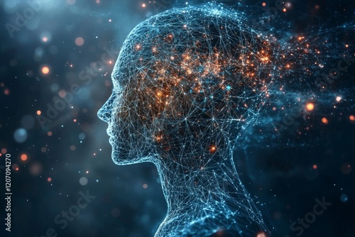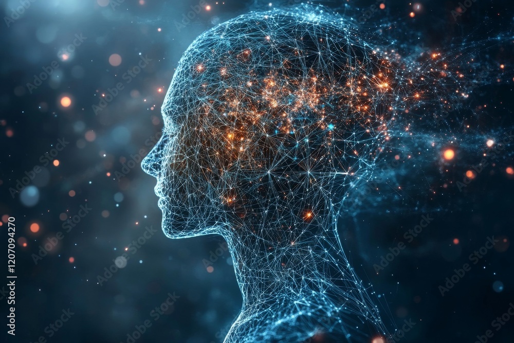 Wall mural a computer generated image of a face with a blue background and orange - Wall murals Wall mural a computer generated image of a face with a blue background and orange - Wall murals
