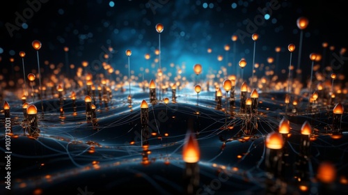 The watermark will not be included on Wall mural.: A computer generated image of a field of glowing lights