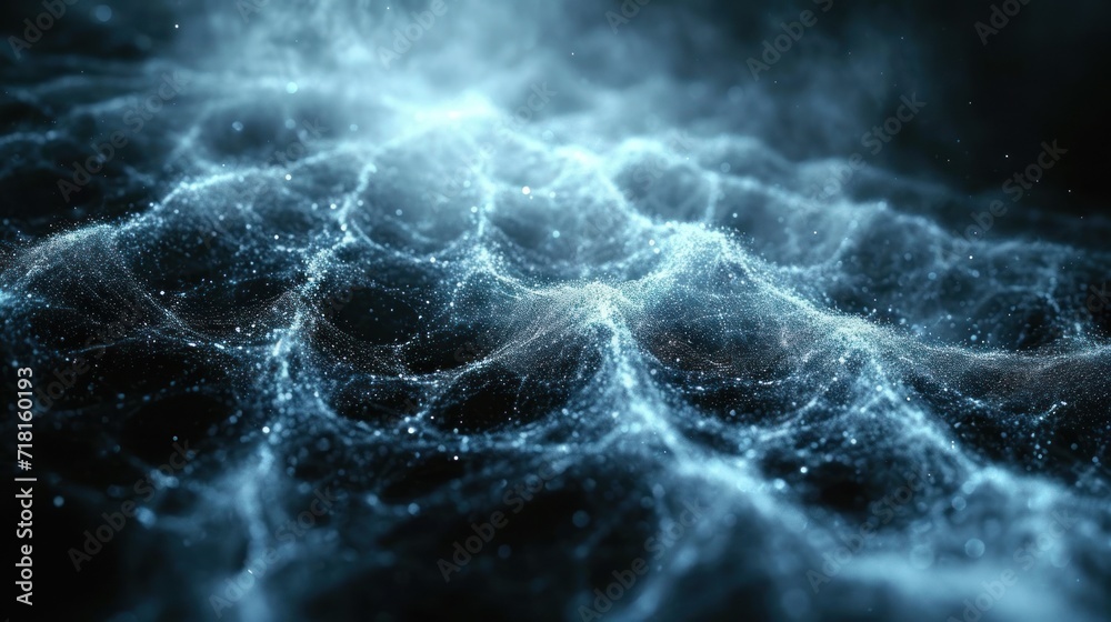 The watermark will not be included on Wall mural.: A computer generated image of a wave of blue and white light on a black background with some white d