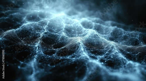 Wall mural a computer generated image of a wave of blue and white light on a black background with some white d