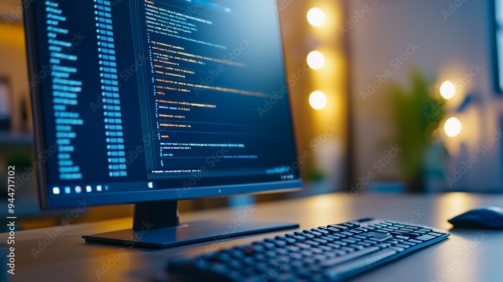 Wall mural : A computer monitor displays a large amount of code on the screen