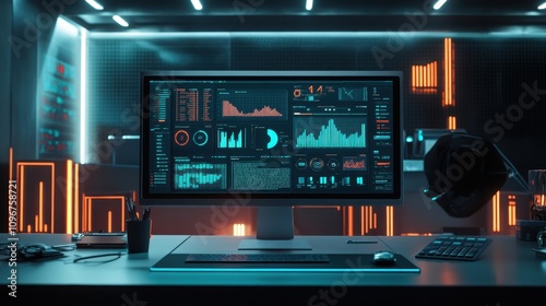 Wall mural a computer monitor displays a number of graphs and charts - Wall murals Wall mural a computer monitor displays a number of graphs and charts - Wall murals