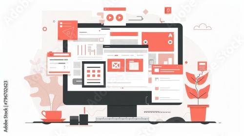 Wall mural a computer monitor with a lot of icons and a plant in the background - Wall murals Wall mural a computer monitor with a lot of icons and a plant in the background - Wall murals