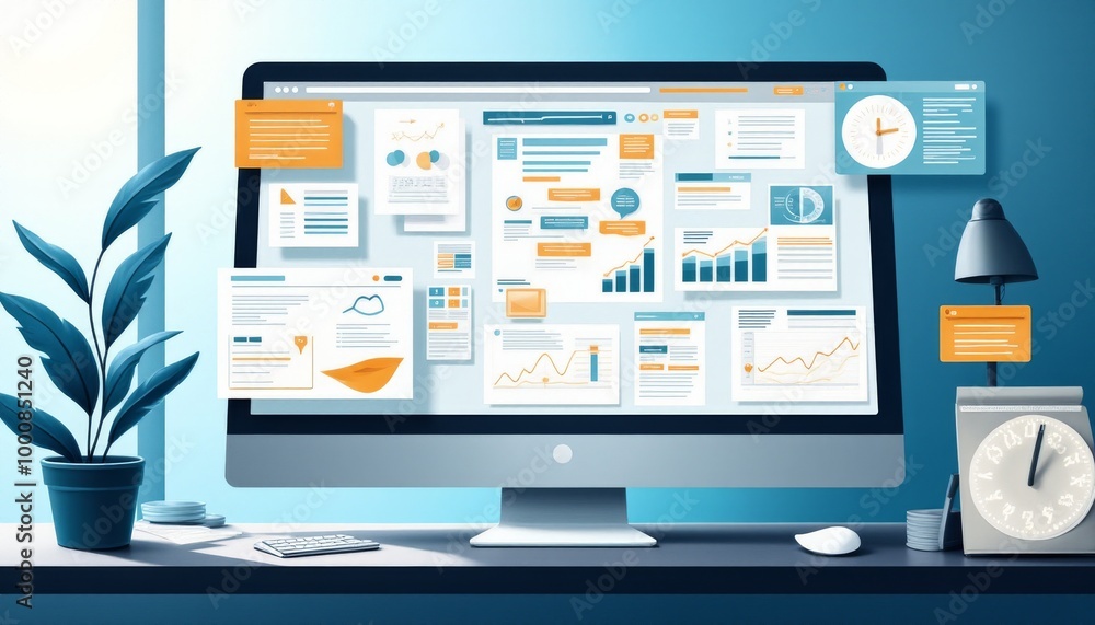 Wall mural a computer monitor with a lot of papers and graphs on it - Wall murals Wall mural a computer monitor with a lot of papers and graphs on it - Wall murals