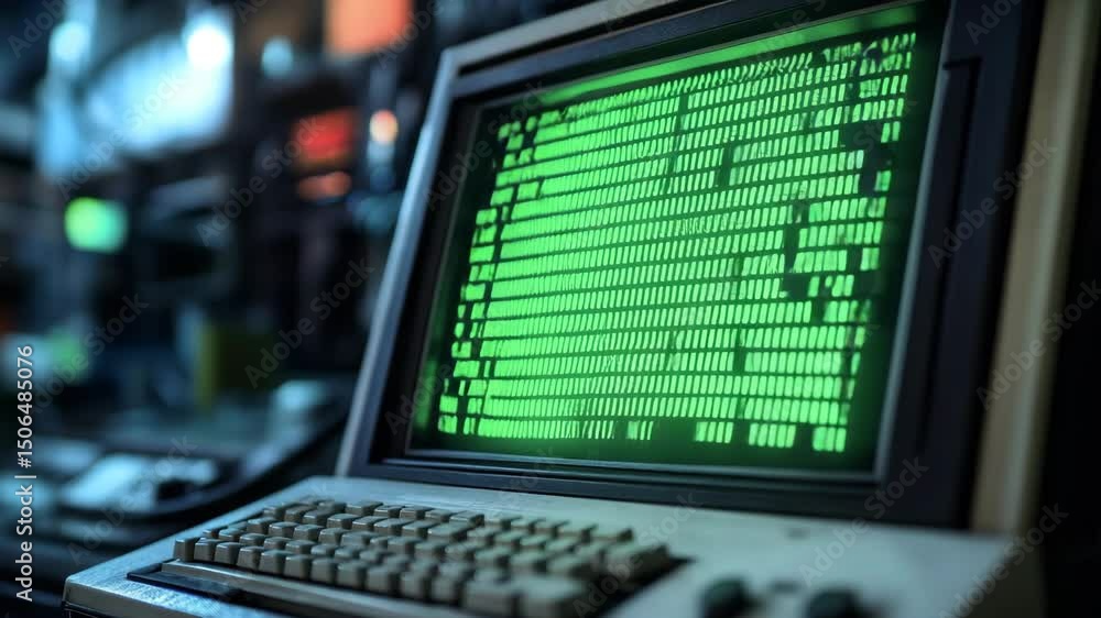 Wall mural a computer monitor with green text on it. the screen is lit up and the text is in black - Wall murals Wall mural a computer monitor with green text on it. the screen is lit up and the text is in black - Wall murals
