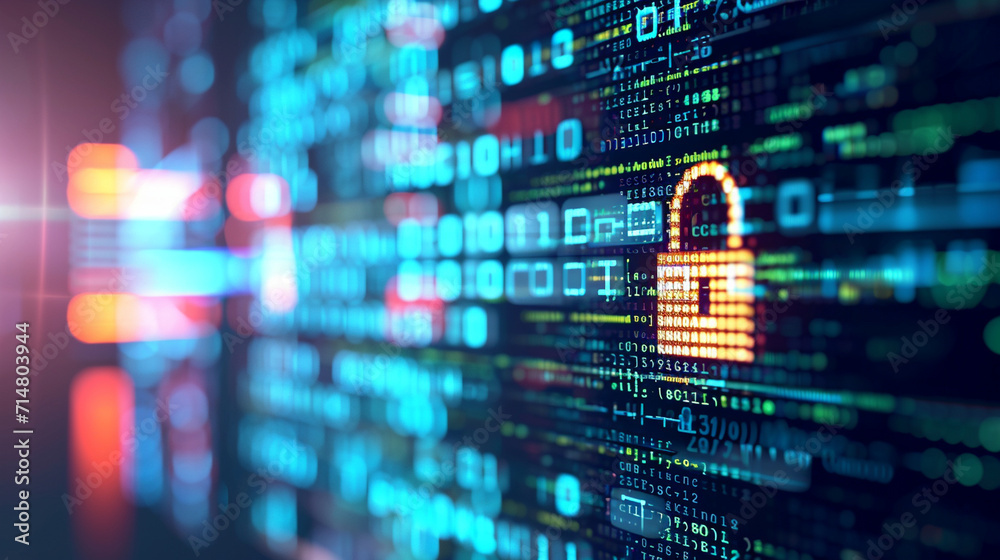 Wall mural a computer screen displaying code with a secure padlock symbol, secure software development, blurred
