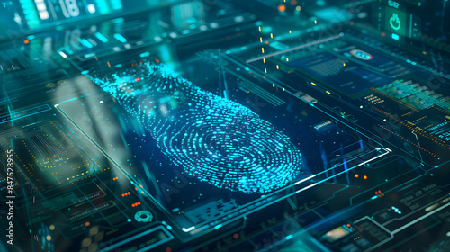 Wall mural a computer screen shows a fingerprint on a blue background. concept of technology and modernity, as  - Wall murals Wall mural a computer screen shows a fingerprint on a blue background. concept of technology and modernity, as - Wall murals