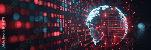 Wall mural a computer screen shows a red and blue globe with a red dot in the middle - Wall murals Wall mural a computer screen shows a red and blue globe with a red dot in the middle - Wall murals