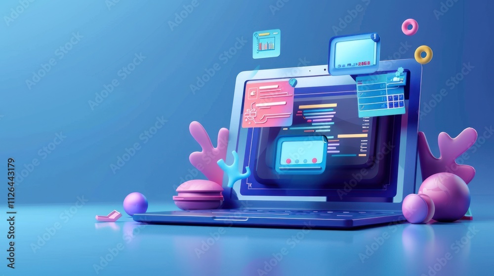 The watermark will not be included on Wall mural.: A computer screen surrounded by an assortment of vibrant and colorful objects, an abstract represent
