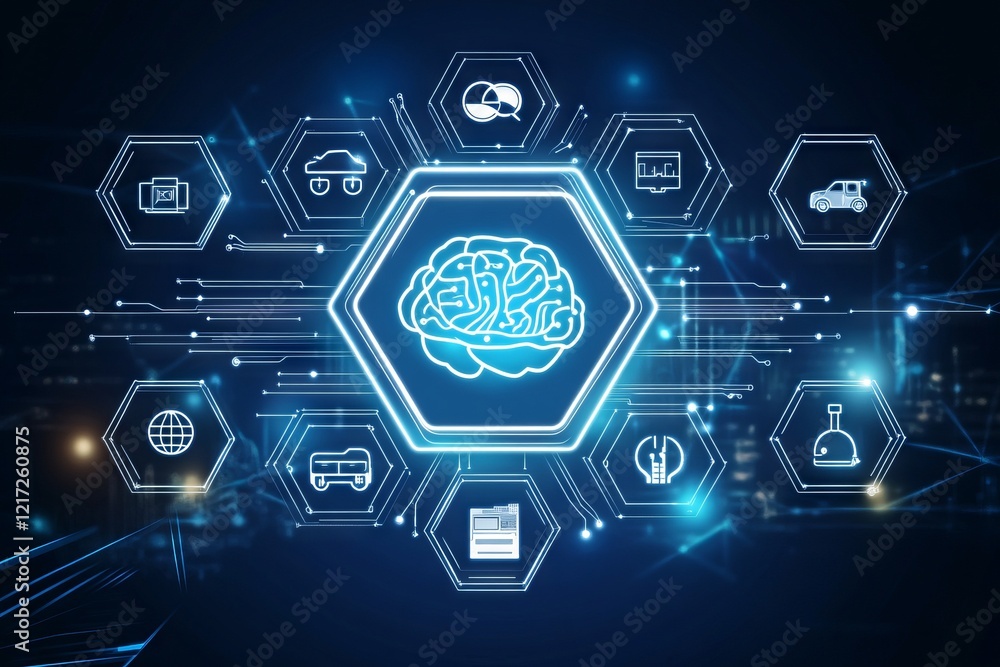 Wall mural a computer screen with a brain and many icons - Wall murals Wall mural a computer screen with a brain and many icons - Wall murals