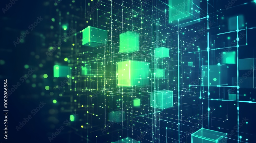 Wall mural a computer screen with a bunch of green cubes. the cubes are arranged in a grid and are connected to - Wall murals Wall mural a computer screen with a bunch of green cubes. the cubes are arranged in a grid and are connected to - Wall murals