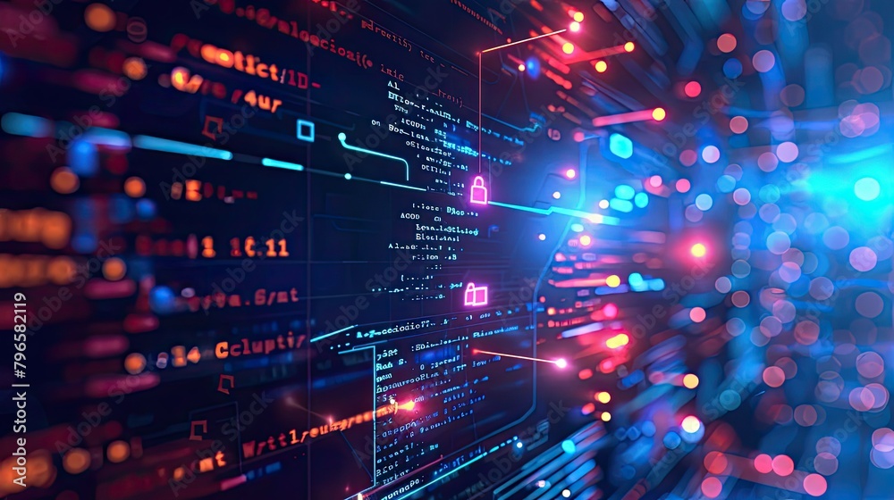 The watermark will not be included on Wall mural.: A computer screen with a lot of code and a red and blue background
