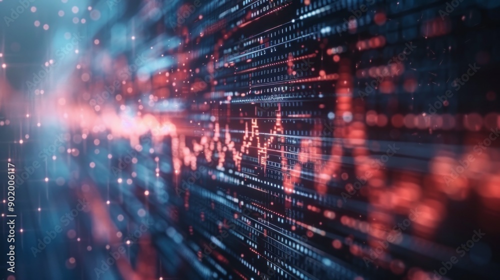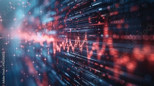 Wall mural a computer screen with a red and blue line that is filled with dots