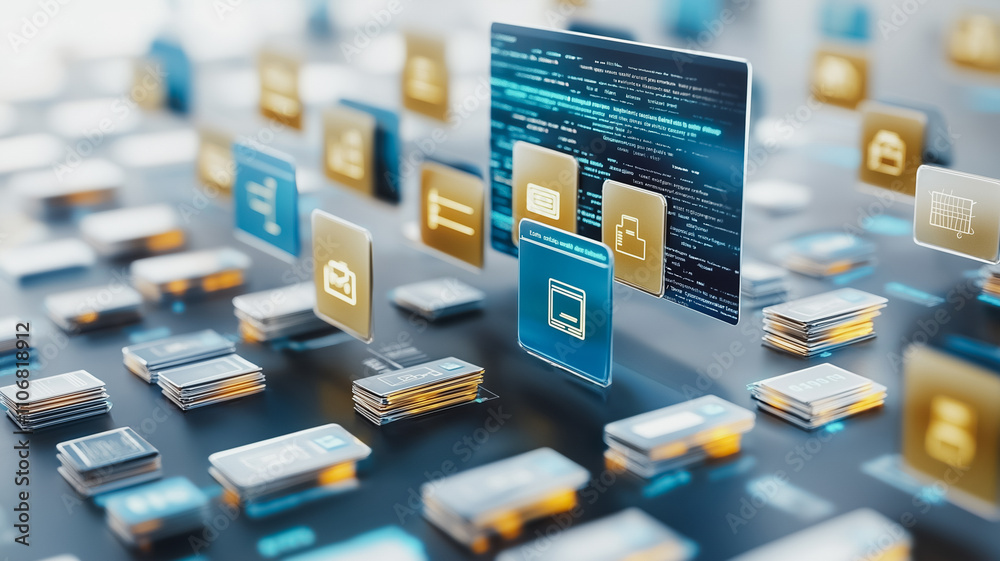 Wall mural a computer screen with many icons and a blue background. the icons are all different shapes and size - Wall murals Wall mural a computer screen with many icons and a blue background. the icons are all different shapes and size - Wall murals