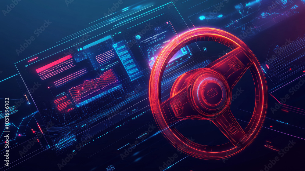 Wall mural : A concept for a computer app that helps businesses manage their data - it uses a steering wheel metap