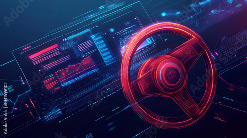 The watermark will not be included on Wall mural.: A concept for a computer app that helps businesses manage their data - it uses a steering wheel metap