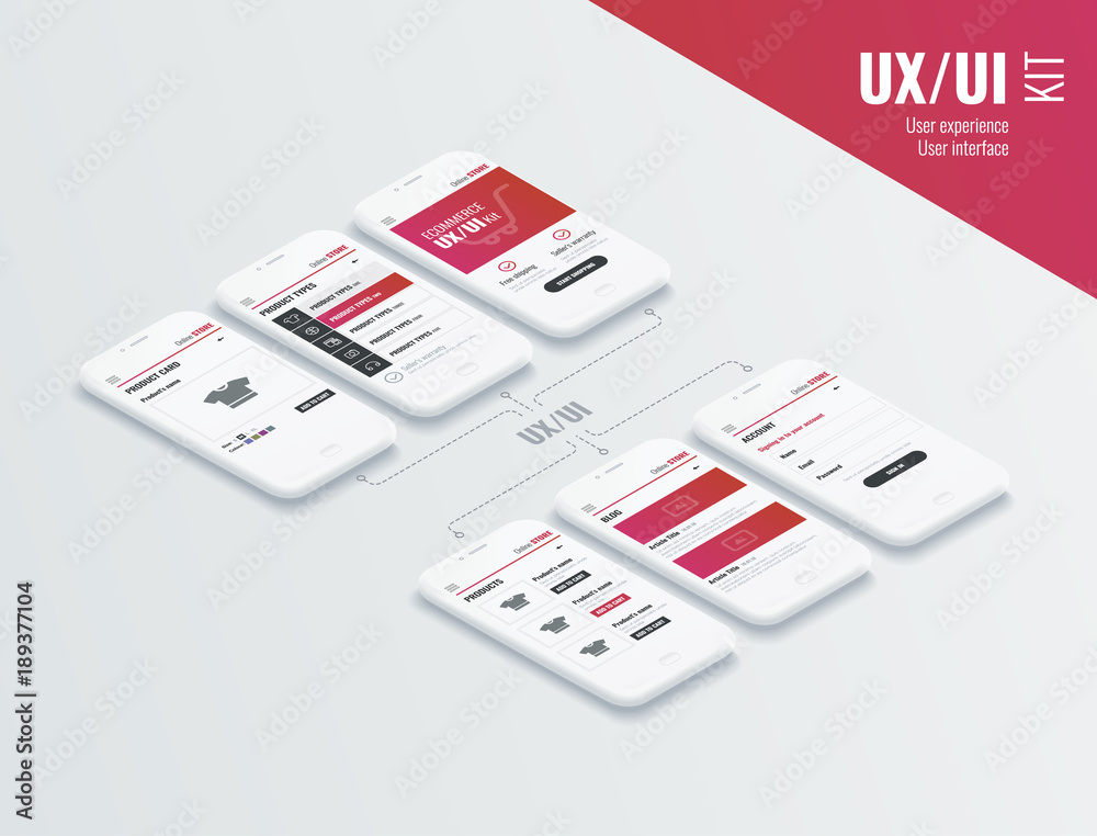 A conceptual mobile phones with a mobile app pagese - user experience, user interface in e-commerce - Wall mural