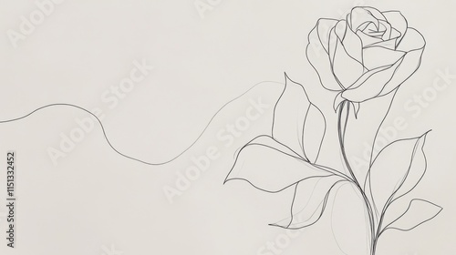 Wall mural : A continuous line sketch of a rose, its graceful curves rendered in black on a pure white canvas -